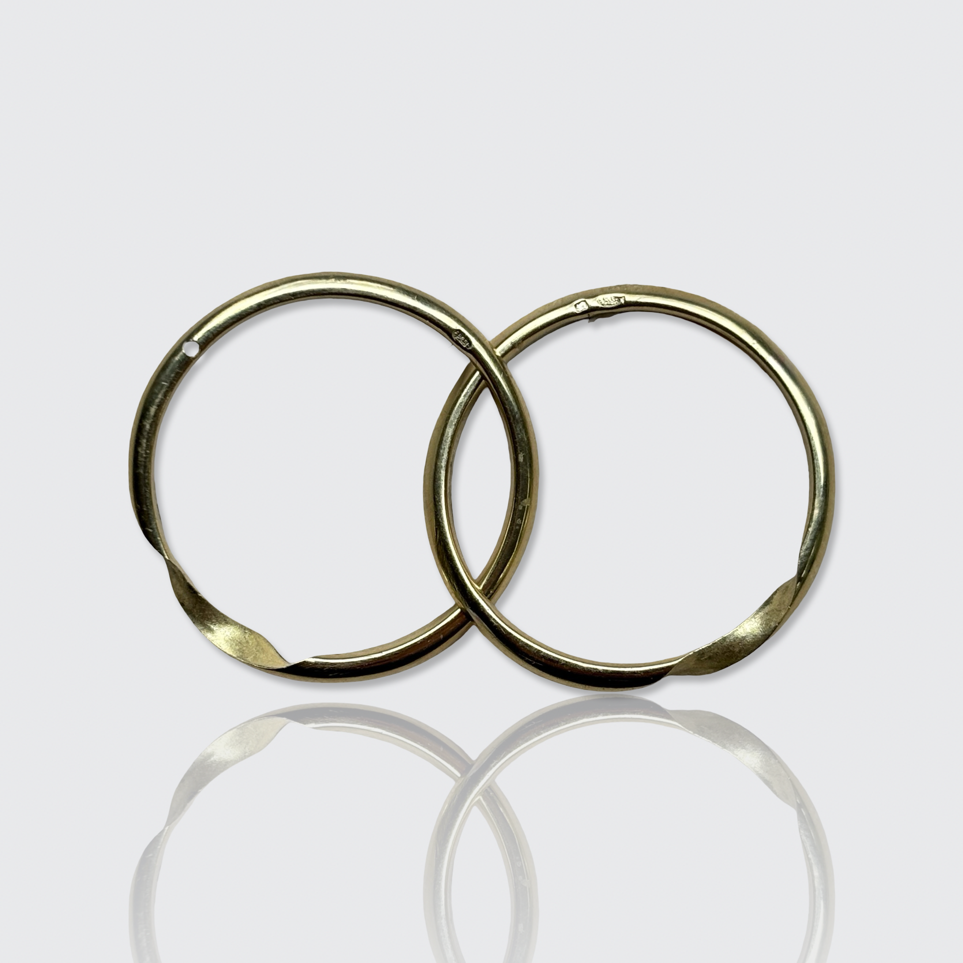 Material and hallmarks: These bands have been hallmarked twice! The first hallmark is a tiny lion's head for 18k gold, used in the Netherlands between 1814 and 1905. The rings were re-assayed in the 21st Century and then received new hallmarks for 14k gold. This is something I have seen more often: the current assaying tools are way more precise than in the 19th Century, and therefore sometimes antique 18k gold tests as just below, therefore receiving a stamp for 14k.