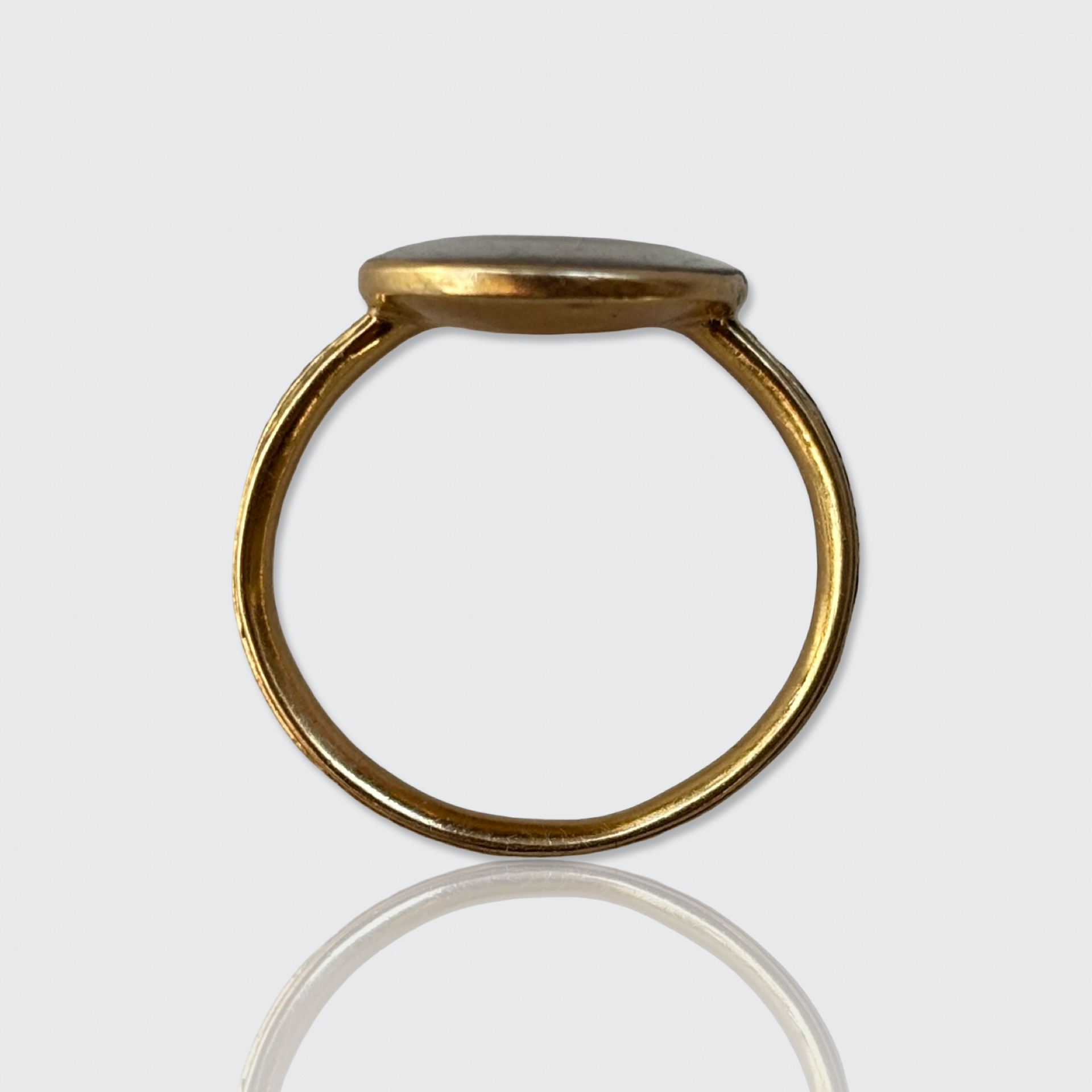 On the outside of the shank, outlined in black enamel, the following inscription can be read: