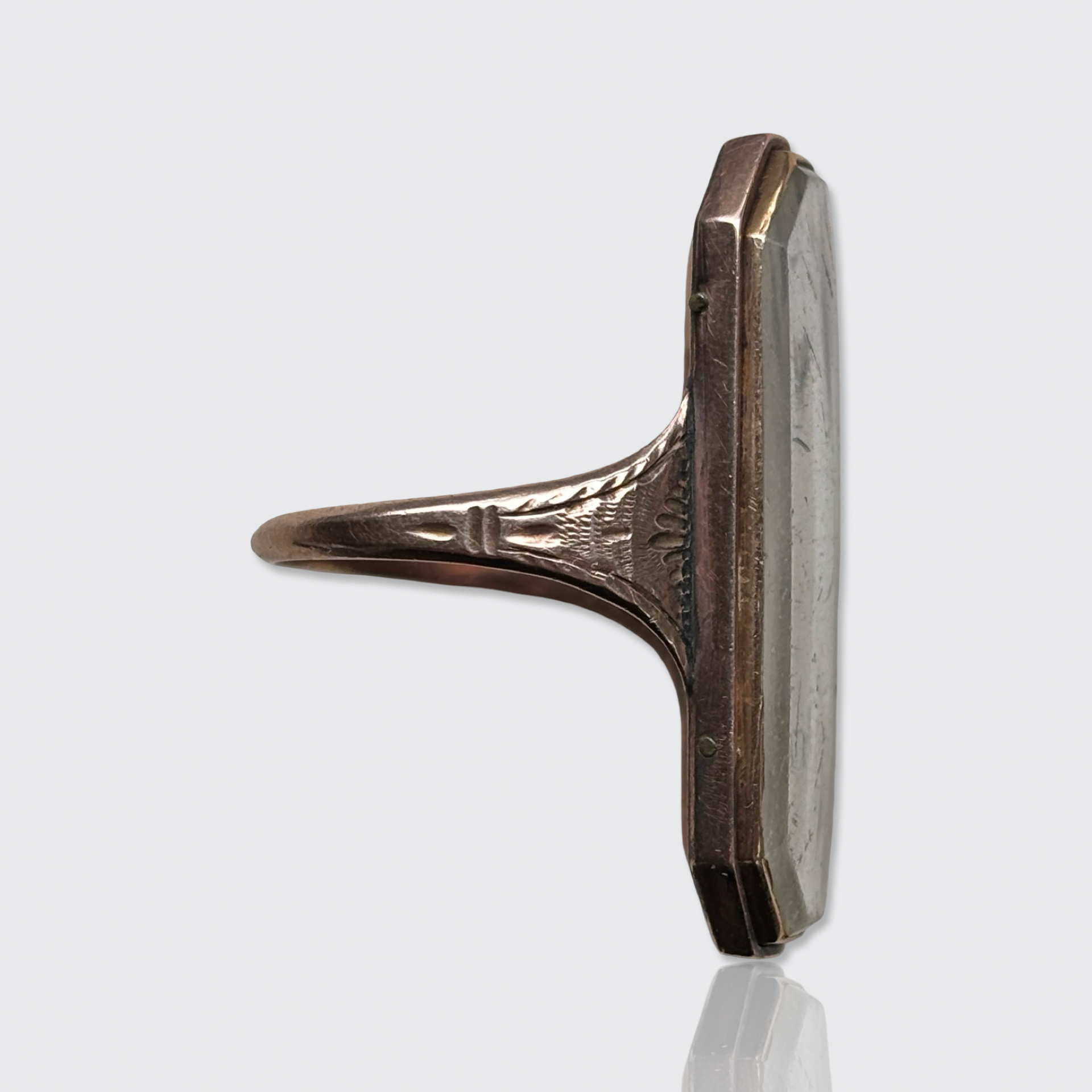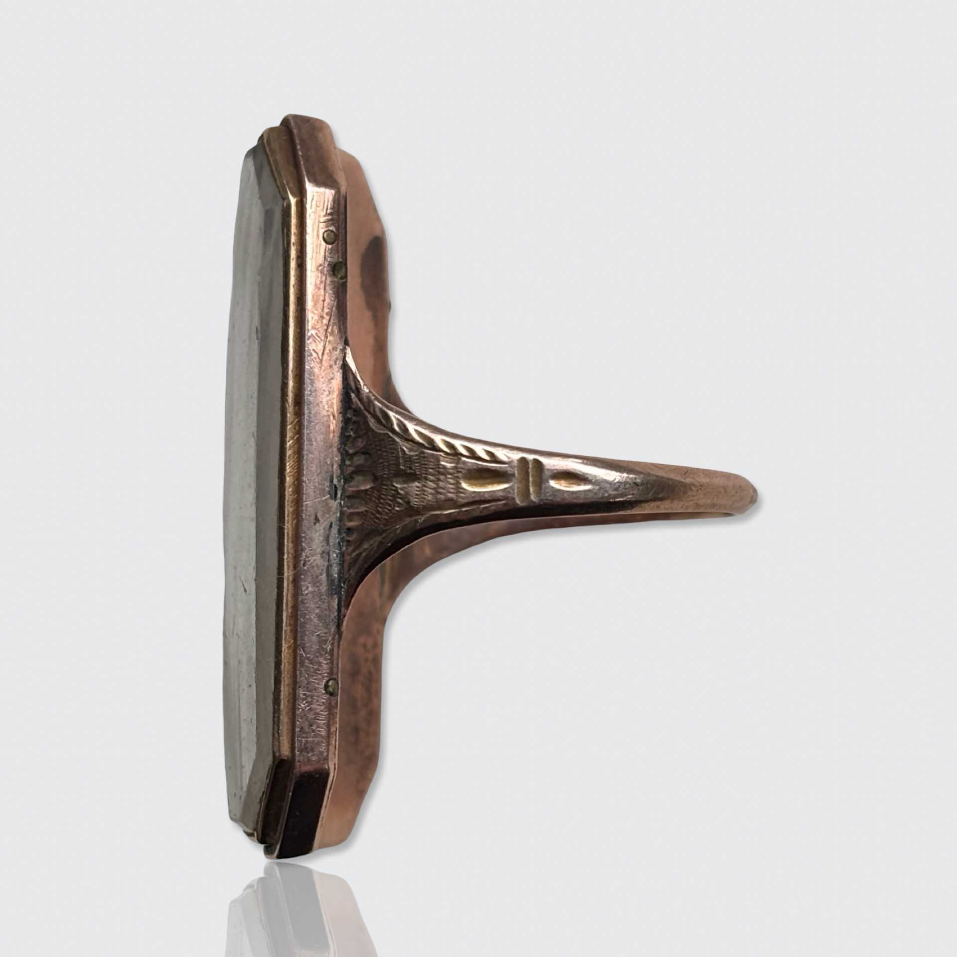 Condition: In good antique condition with only minor wear, consistent with its age. There are some scratches on the glass panel, and some hair fragments have come loose and have stuck on the inside of the panel (where, for now, they remain in place, so they do not move freely under the panel when you move the ring): this can be observed in the pictures.
