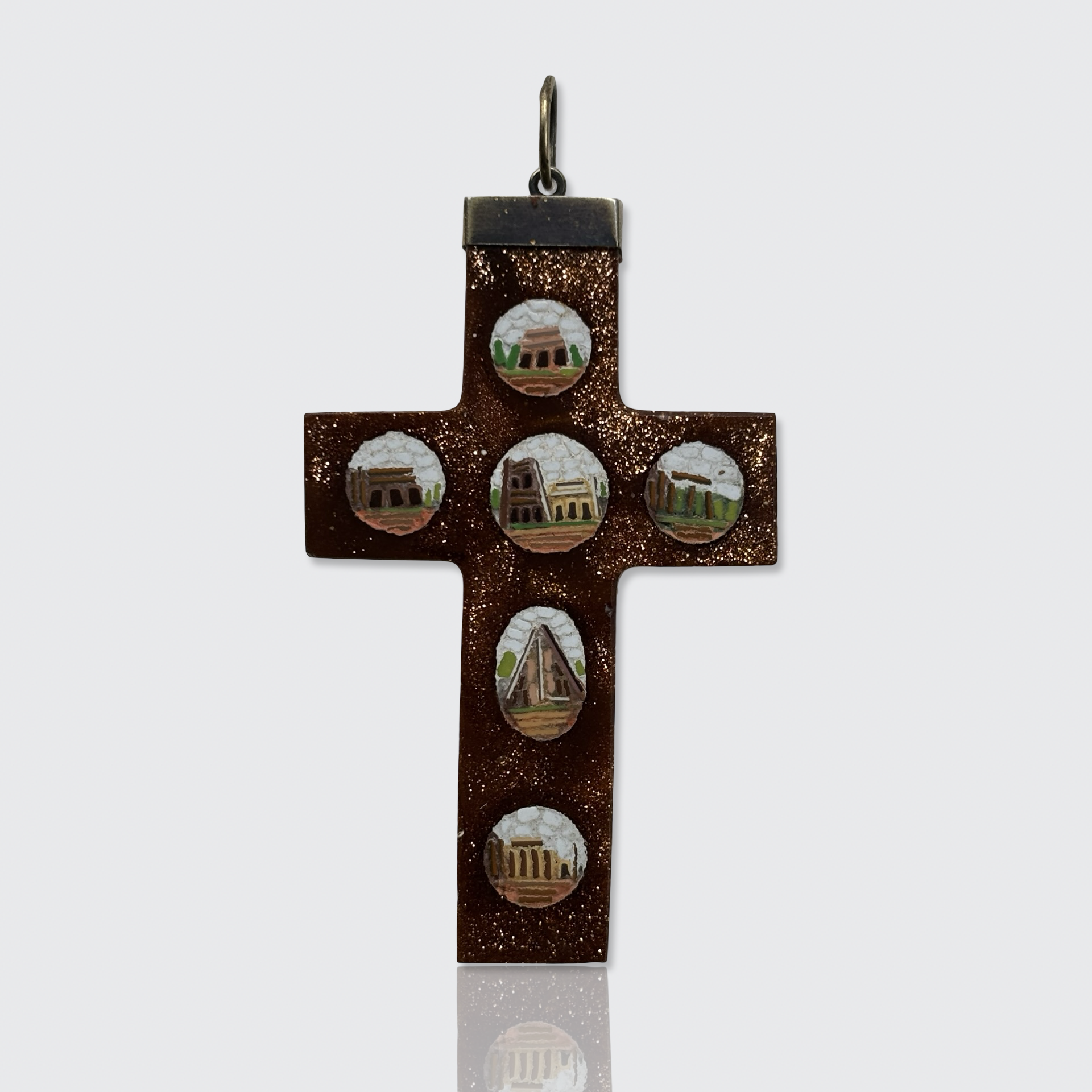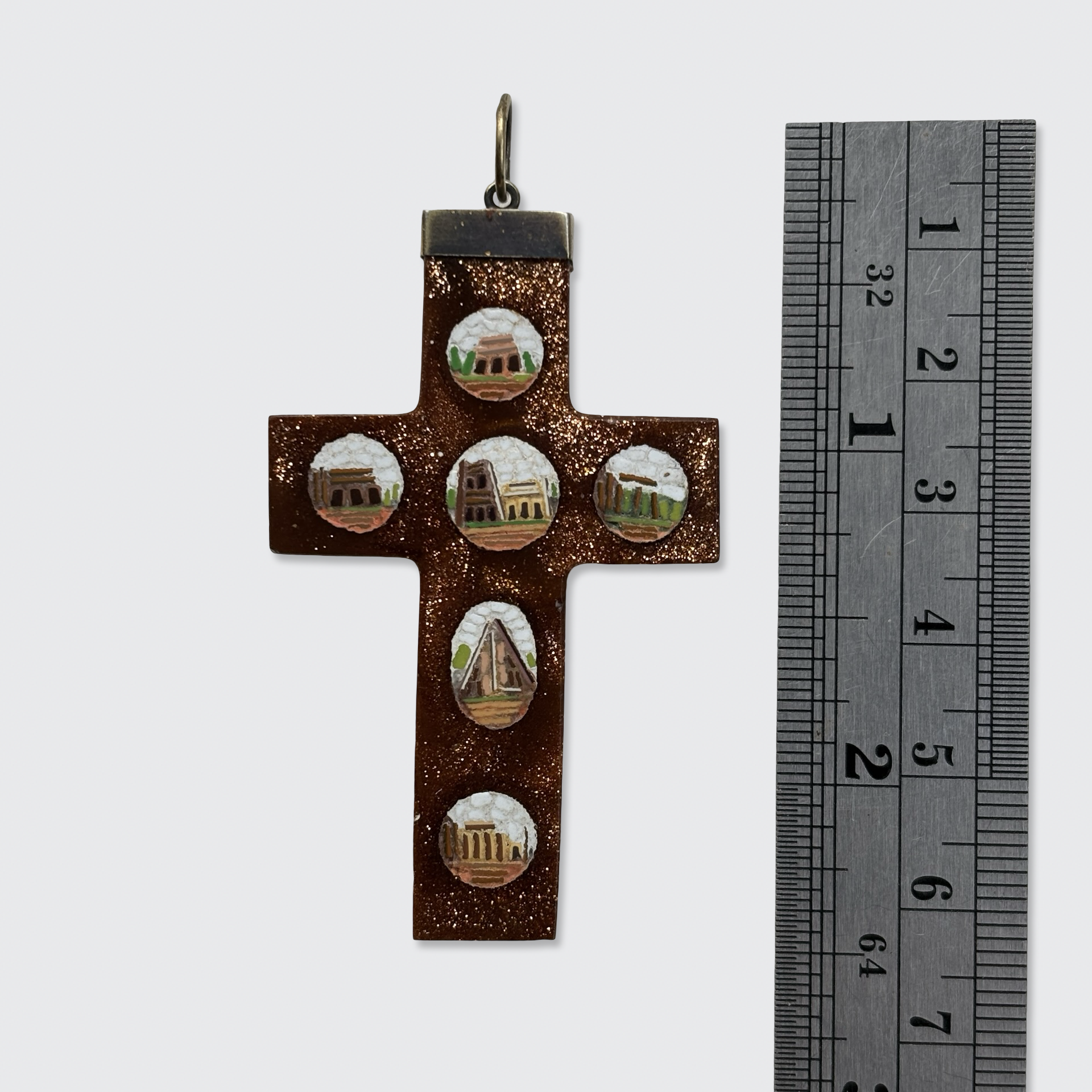 Victorian Goldstone Micro Mosaic Grand Tour Cross Pendant