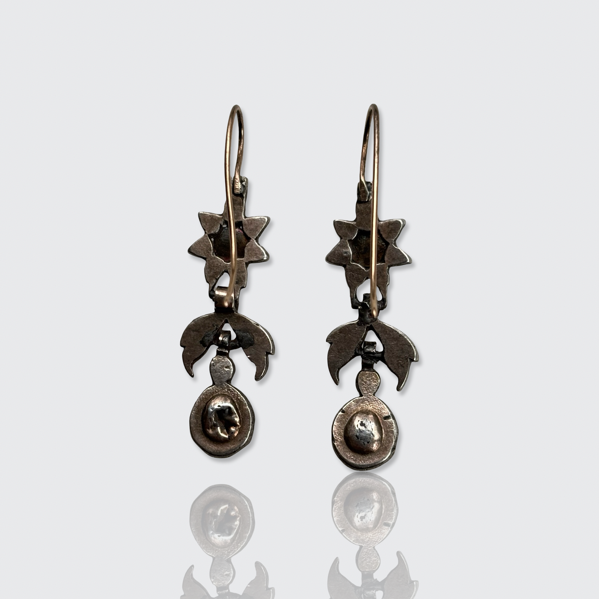 Material: The hooks have been acid tested as 14k gold; the settings are made from silver.