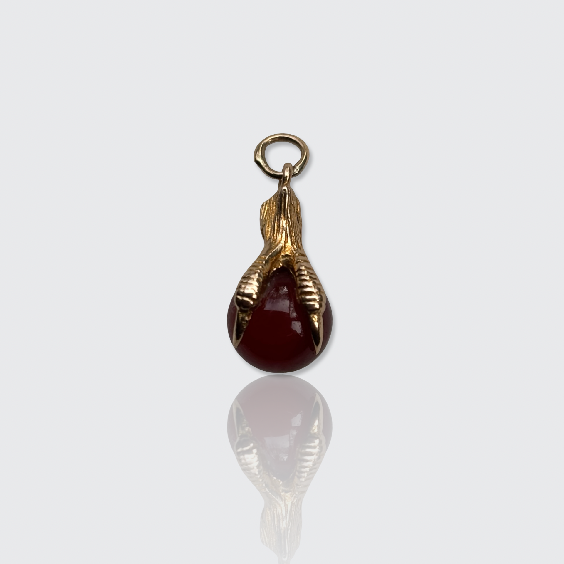 This 9k yellow gold pendant is shaped like a bird claw, which clasps a carnelian bead of 9 mm in diameter.