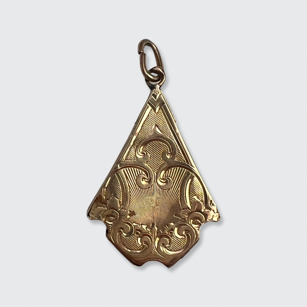This locket is made from 14k yellow gold and is engraved on both sides. When closed, the locket resembled a lozenge shape, but it is most beautiful when it is opened, revealing four panels, each containing an oval picture frame.