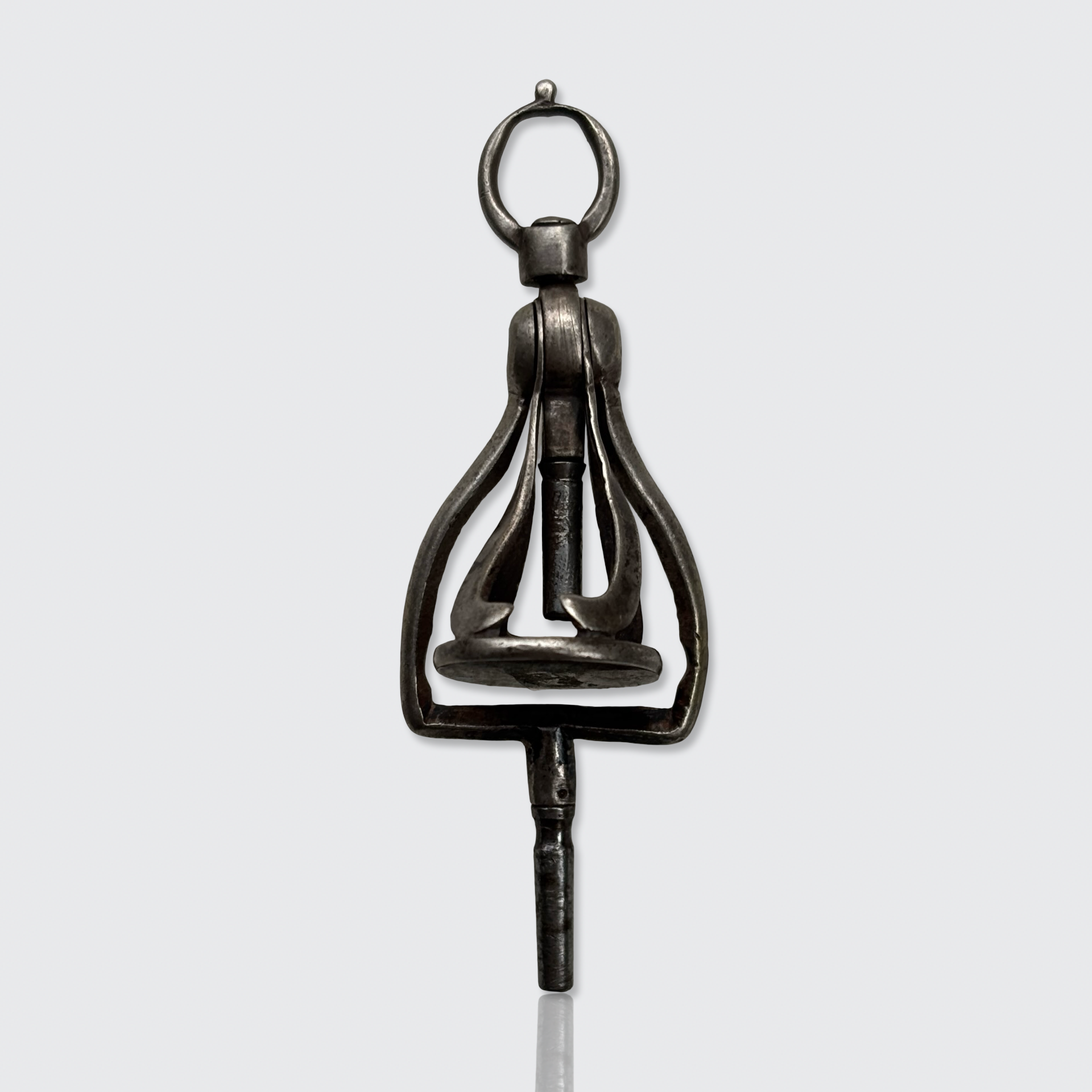 This iron swivel fob can be opened to reveal two different watch keys and an unengraved fob, which could be used to close off letters with hot wax.