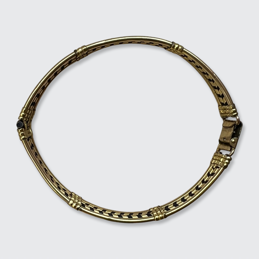 Material: The bracelet has been marked 'plaque or lamine' on the clasp, meaning it is gold-plated. It also has a maker's mark 'CB MM', which I was not able to identify.